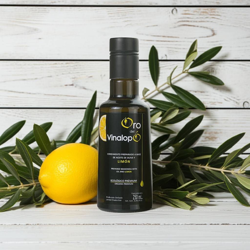 Odkryj niepowtarzalny smak i wartość naszej ekologicznej oliwy z oliwek z cytryną Extra Virgin ORO DEL VINALOPÓ. Dzięki unikalnemu procesowi produkcji i starannie wyselekcjonowanym składnikom, nasza oliwa dostarcza nie tylko niezwykłych doznań smakowych, ale również wiele korzyści dla Twojego zdrowia. To doskonały wybór dla osób dbających o swoją dietę oraz tych, którzy pragną wzbogacić swoje kulinarne doświadczenia.