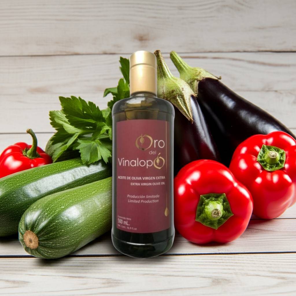 Oliwa ORO DEL VINALOPÓ wyróżnia się intensywnym i lekko gorzkawym smakiem świeżych zielonych owoców, który sprawia, że każdy kęs to prawdziwy festiwal smaków. Dzięki unikalnej kompozycji oliwek ta oliwa nie tylko doskonale podkreśla smak potraw. Dzięki wysokiej jakości składnikom i starannej produkcji, oliwa z oliwek Extra Virgin ORO DEL VINALOPÓ nie tylko dodaje charakteru każdej potrawie, ale także dba o Twoje zdrowie. Zaskocz swoich gości doskonałym smakiem oraz aromatem tej wyjątkowej oliwy i ciesz się kulinarznymi doświadczeniami na najwyższym poziomie.